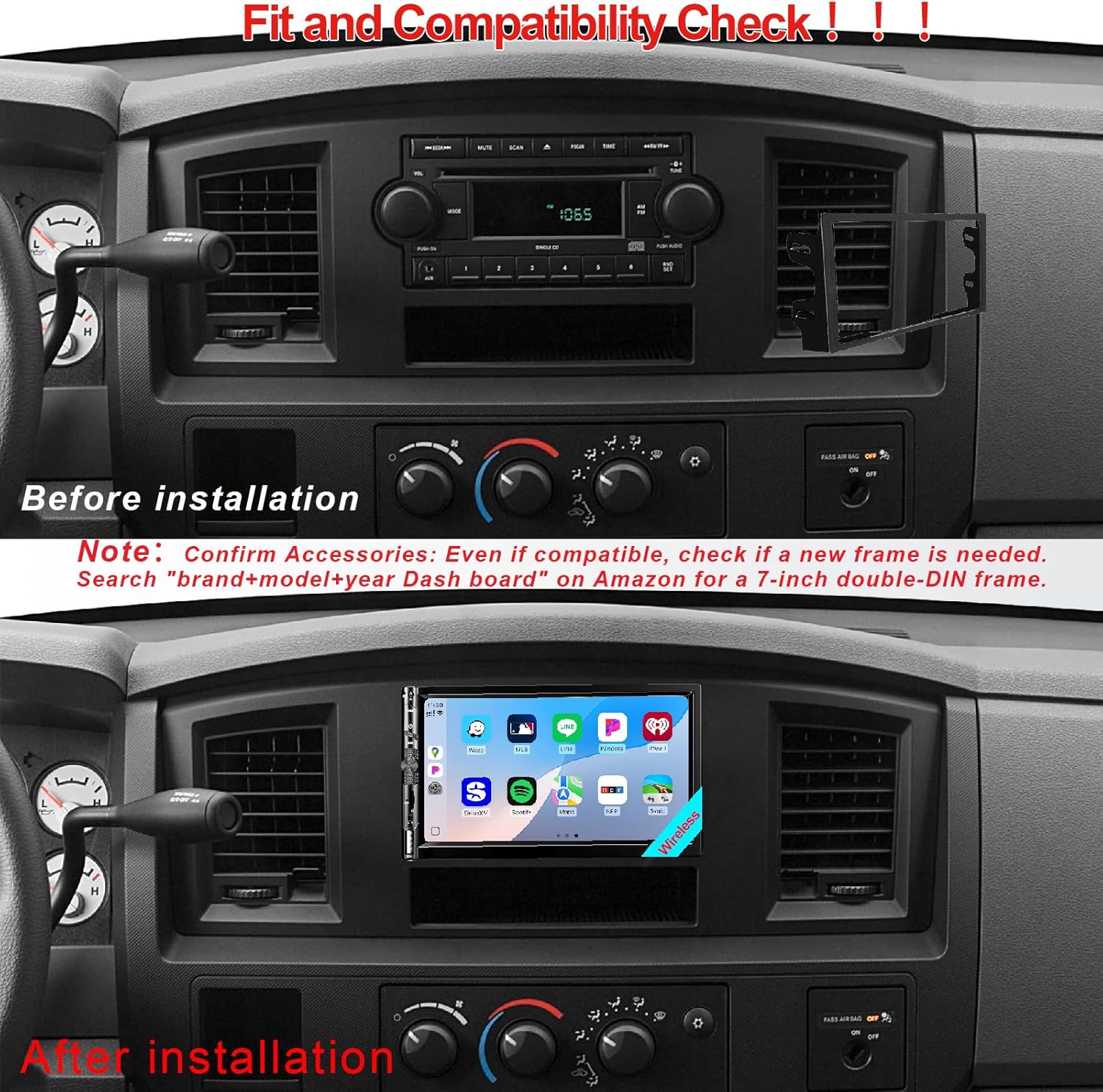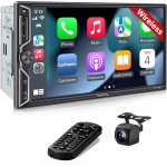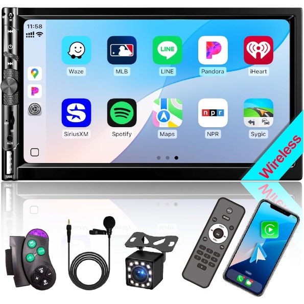 7“ Double DIN Car Stereo with Wireless Apple CarPlay Android Auto, Car Radio