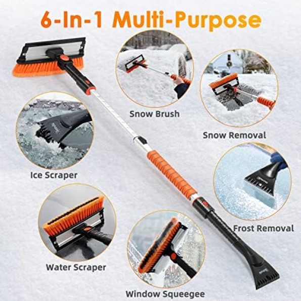 Multi-Functional Snow Brush: It gives a squeegee opposite the brush head. The ice scraper is detachable for faster and easier use. If you want to clean glass when you doing house cleaning on festivals, the ice scraper and snow brush with squeegee is a better choice.