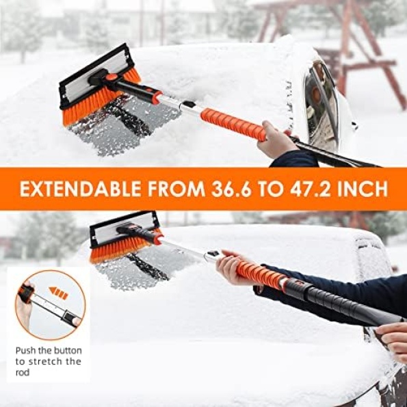 Multi-Limit Length Extendable: Our snow brush is equipped with a 10 limits retractable design; the longest side can be extended from 36.6 to 47.2 inches, making the hard-to-reach areas very easy to clean. Suitable for an SUV, Car, Trunk, etc.