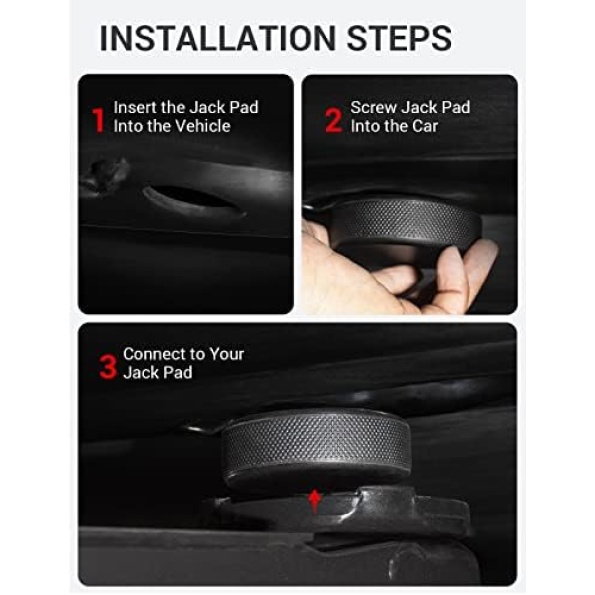 Premium Material: Tesla jack pad set is made from durable, odor-free black rubber. They’re sturdy and built to last thanks to a one-piece molding process.