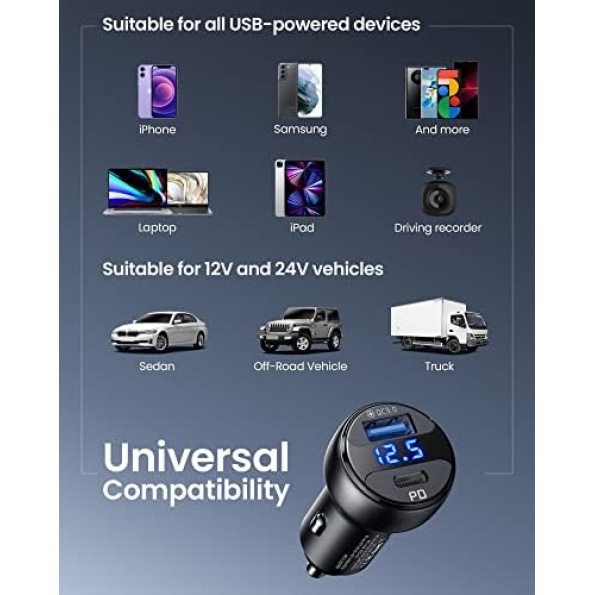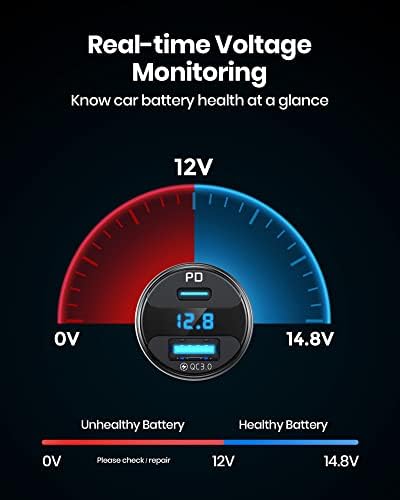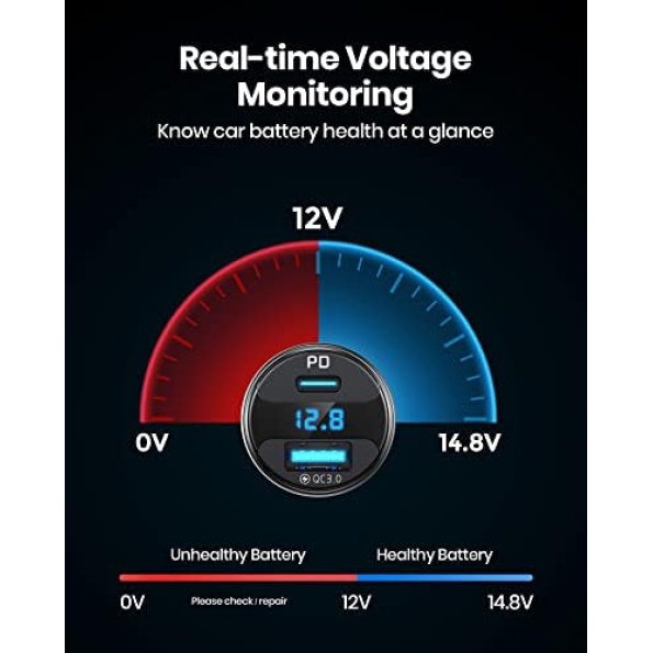 ✅【Unique & Useful Voltage Display】 Quickly see your car battery health before you go with the real-time voltage digital display. Convenient reminder for you to check or repair the car battery in time, avoiding possible breakdown on the go.
