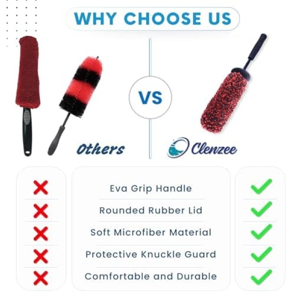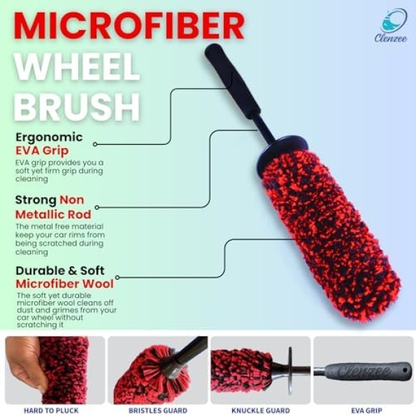 Clenzee Microfiber Wheel Brush – Soft Non Metallic Wheel Cleaner Brush