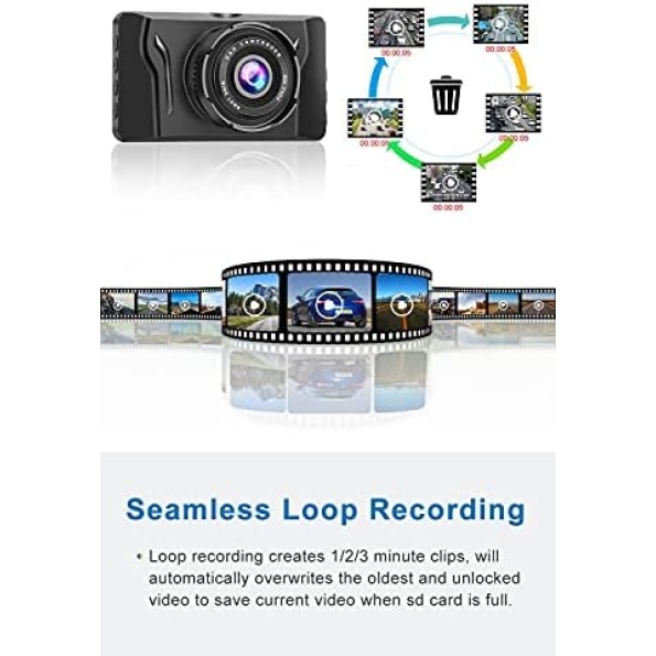 [Seamless Loop Recording & G-sensor]-When the storage limit is reached on the memory card, new recordings will automatically overwrite oldest and unlocked videos. Triggered by G-sensor, CHORTAU dashboard camera can automatically detect a sudden shake/collision and lock the footage to prevent the video from being overwritten even in loop recording. Accident scene can be truly restored and give you piece of mind.