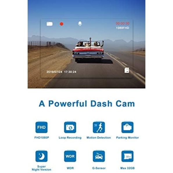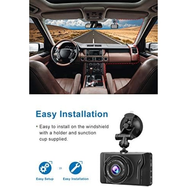 [Easy to Install]-Easily mount to your car’s windshield with the included suction cup and holder. Inserting 32GB SD Card to card slot(Card is not included), connecting the dash camera with the power cable, inserting the power cable to sockets, the driving camera will automatically turn on and record when you start the engine.