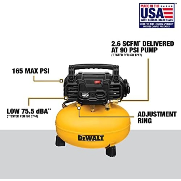 DEWALT Pancake Air Compressor, 6 Gallon, 165 PSI (DWFP55126)