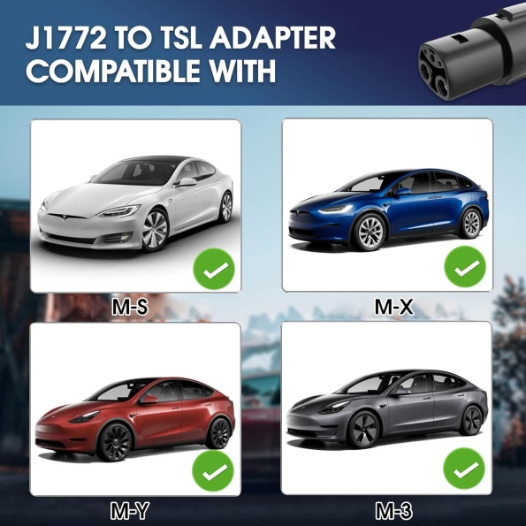 ⚡ Simply connect the adapter to the SAE J1772 charger, then connect to your Tsl vehicle.