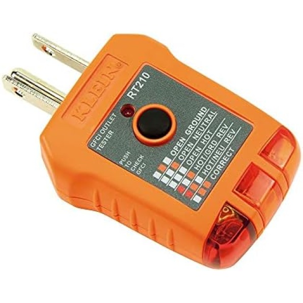 GFCI RECEPTACLE TESTER: Cat. No. RT210 detects common wiring issues in standard and GFCI receptacles, including open ground, reverse polarity, and more