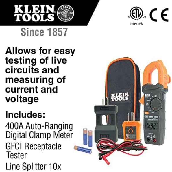 Klein Tools CL120KIT Clamp Meter Electrical Test Kit, AC Auto Ranging 400 Amp