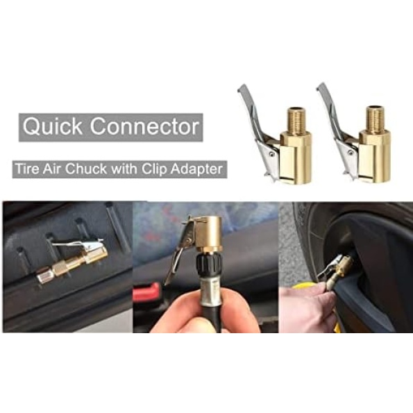 [ Premium Tire Air Chuck With Clip Adapter ]: Each air chuck is made of heavy duty solid brass for higher strength and durability. High quality material also has excellent anti-corrosion, wear resistance yet the maximum pressure is up to 250 PSI.