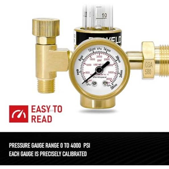 Compatible with CGA-580 tanks: Easily attach this Gas Pressure Regulator/Flowmeter to your Argon, Helium, and CO2 tanks with its CGA-580 inlet connector.