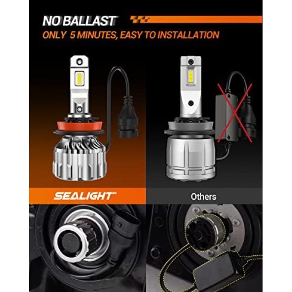 5 Minutes Quick Installation: 360° adjustable lock ring and wireless design enables SEALIGHT S6 H11 9005 LED light bulbs can be installed within 5 minutes. Plug and play, LED lights fit nicely into your auto light housing without any modification.