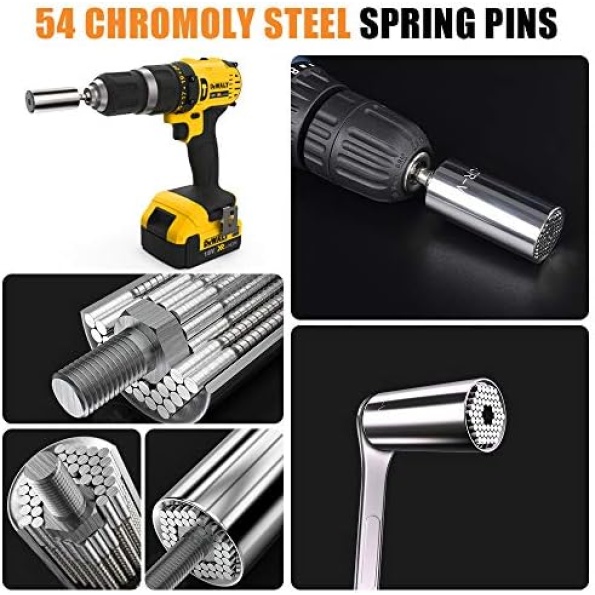 The Unique Tools for Men Women: Constructed from 54 chrome vanadium steel, the universal socket is tough enough to get the job done, move to different types of fasteners without every changing sockets. A man who works hard for home improvement deserves this practical universal socket. Perfect tools for home improvement, carpentry tools, auto repair, household maintenance, construction, home renovations, house remodels, drill accessories, woodwork and other DIY projects