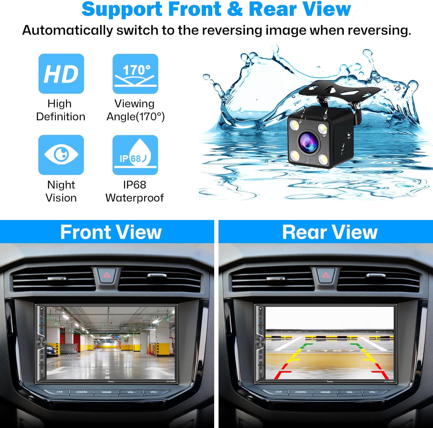 Night Vision reversing camera: The car radio supports the rear and front view and will display the image automatically when the vehicle shifts into reverse. HD night vision rear view camera is included, ultra-wide viewing angle of 170 ° and a fully waterproof design, helps to park more safely and easily