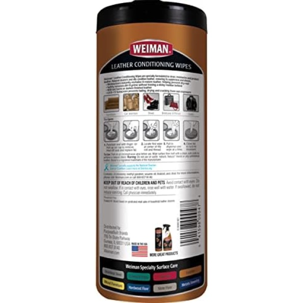 Weiman Leather Cleaner & Conditioner Wipes With UV Protection