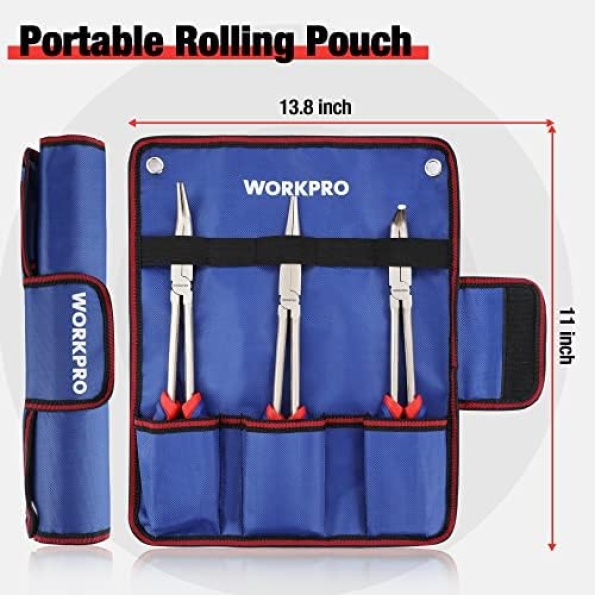 WORKPRO 3PC Long Reach Pliers Set, 11 Inch Extra Long Needle Nose Pliers Set