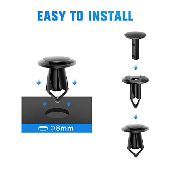 EASY TO USE – Push-type clips just fix it to its mounting point and you’re done, rivet post pressure expands legs for fast and tight fastening. Simple to install without complicated installation steps.