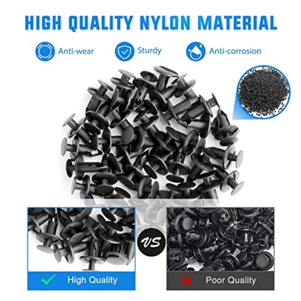 HIGH QUALITY – The bumper clip is made of black nylon material, tougher than common nylon, not easy to break or deform, anti-wear and anti-corrosion.