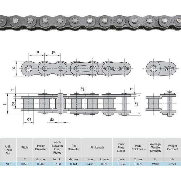 This 35 roller chain is made of high -strength alloy steel, which is very wear-resistant and significantly increases the life of the chain. Chain and sprocket pitch are perfectly inlaid to avoid the chain falling off during the ride