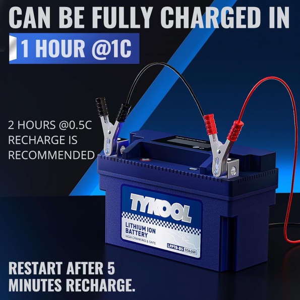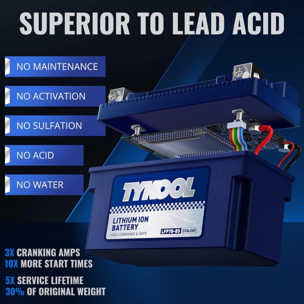 High Performance and Lightweight: Tykool Lithium Ion Powersports battery provide over 300-amps of starting power,over 4000 Charging Cycles. Compared to lead-acid battery, it’s 2X more power,10X more starts,and 5X longer life