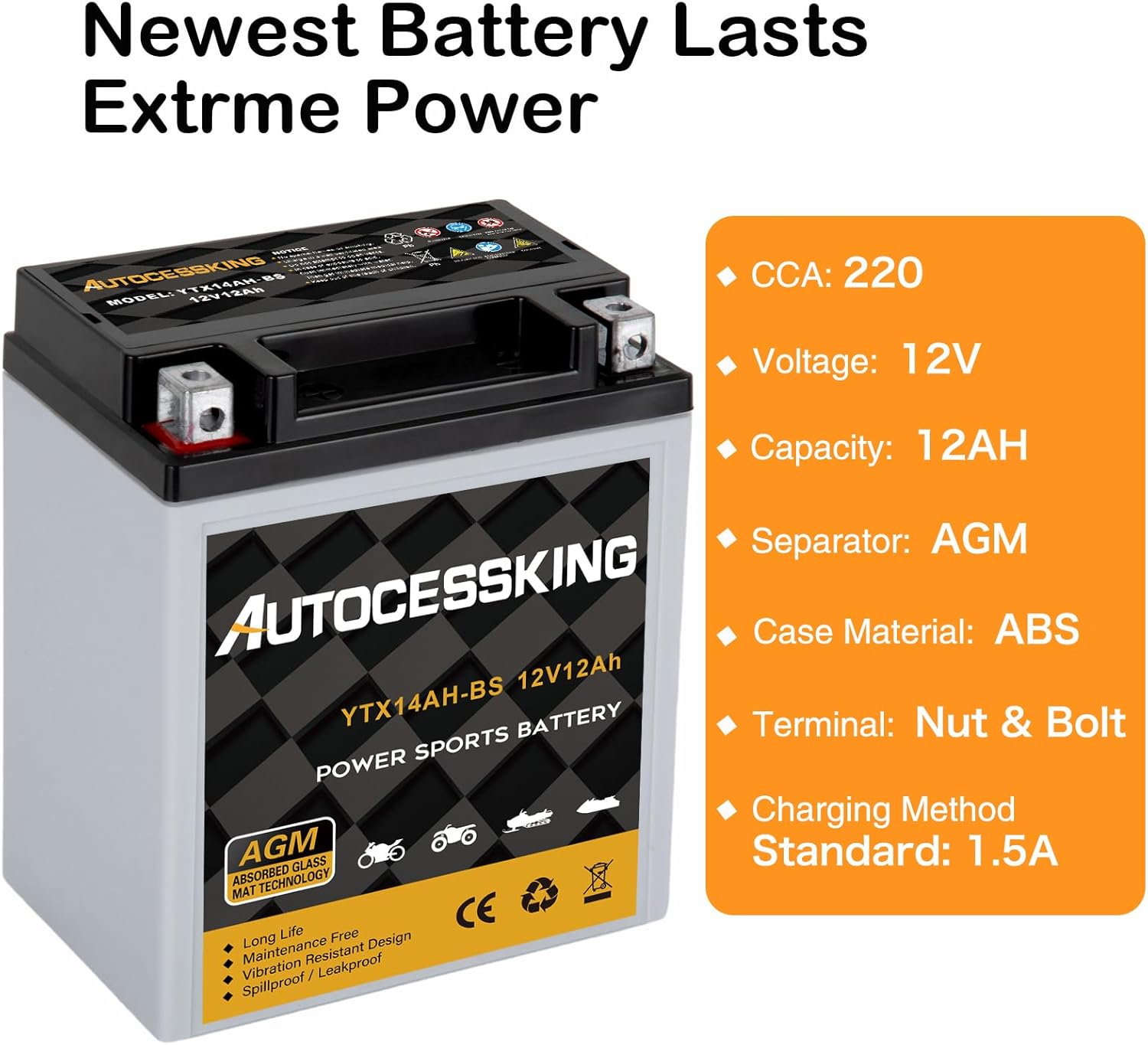 YTX14AH-BS 12V 12Ah Battery, Rechargeable Sealed AGM Battery Maintenance